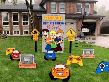 Delivering 364 days a year! Safe , no contact delivery & set up! birthday flags, party flags, yard signs, Toronto, Mississauga, GTA, birthday signs, lawn cards, lawn decorations,